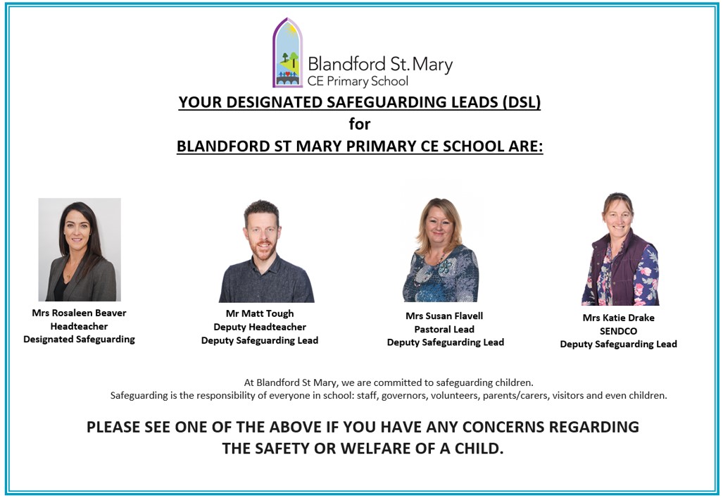 At Blandford St Mary Primary we are committed to safeguarding children. Safeguarding is seen as something that is the responsibility of everyone in school: staff, Governors, volunteers and children.